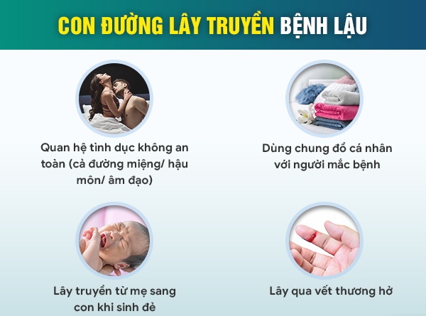 Quan hệ tình dục không bảo vệ: Đây là con đường lây lan chủ yếu, chiếm phần lớn số ca mắc. Vi khuẩn lậu truyền qua dịch tiết sinh dục khi có tiếp xúc trực tiếp giữa dương vật, âm đạo, miệng hoặc hậu môn.